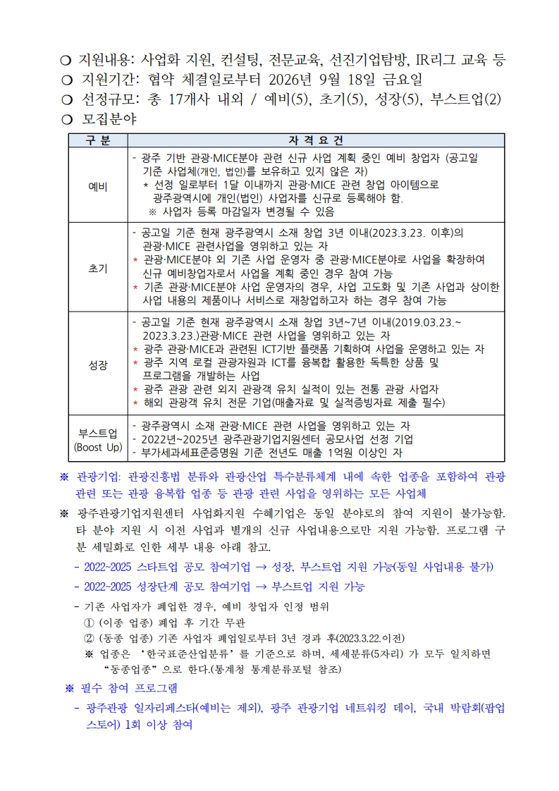 2026년 광주 관광MICE기업 성장단계별 맞춤지원 프로그램 참여사 모집공고