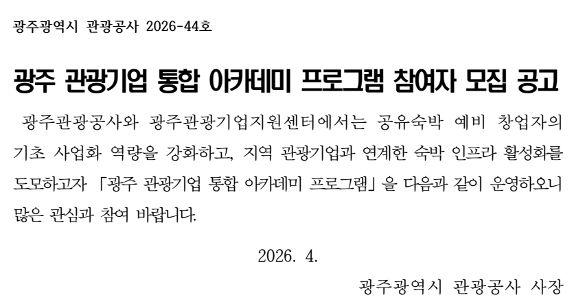 2026 광주 관광기업 통합 아카데미 프로그램 참여자 모집 공고.pdf : 204.7KB